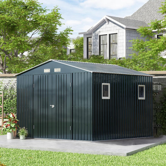 Breezz Outdoor Storage Shed 10 x 12 ft. Utility Tool Shed Metal Storage Garden Shed with Lockable Doors, Windows & Metal Frame Floor for Patio Storage, Nightblue