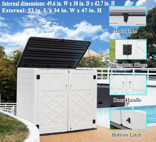 ADDOK 2SG Larger Horizontal Storage Shed Wood-Like, 4.4 x 2.8 ft Outdoor Storage Cabinet Lockable, Thick Resin Storage Unit for Trash Cans, Yard Tools(38 Cu.ft