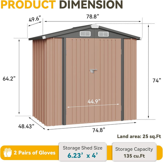 6x4 FT Outdoor Metal Storage Shed, Single Door, 1 Clear Window, Tool Shed for Garden, Patio, Backyard Brown