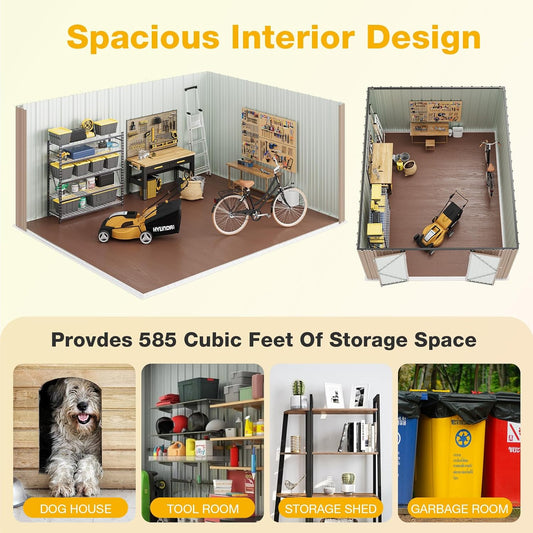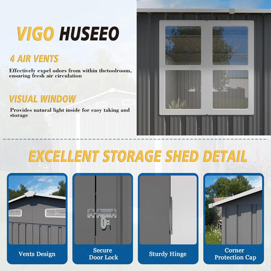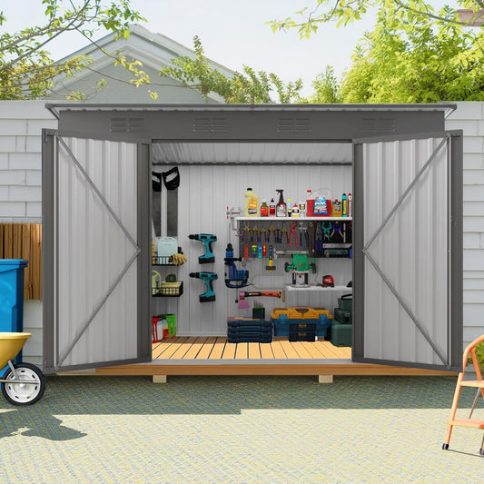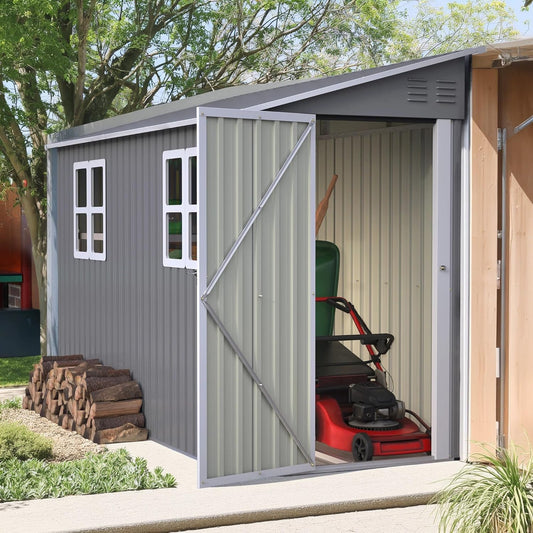 10x8x6.4FT Outdoor Storage Shed, Galvanized Steel Garden Shed with Lockable Door & Window, Waterproof Metal Tool Storage for Garden, Backyard, Patio, Lawn(Grey)