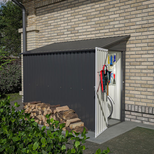 4 x 8 FT Metal Outdoor Storage Shed with Foundation, Lean to Storage Sheds w/Lockable Door and Air Vents, All Weather Waterproof Garden Tool House for Backyard, Patio, Lawn, Black