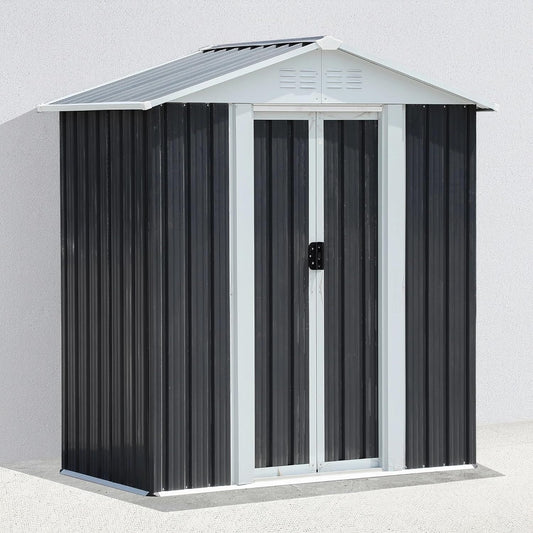 5X3 FT Outdoor Storage Shed, Waterproof Metal Garden Sheds w/Lockable Sliding Doors and Vents, Weather Resistant Tool Storage House for Backyard, Patio, Lawn, Dark Grey