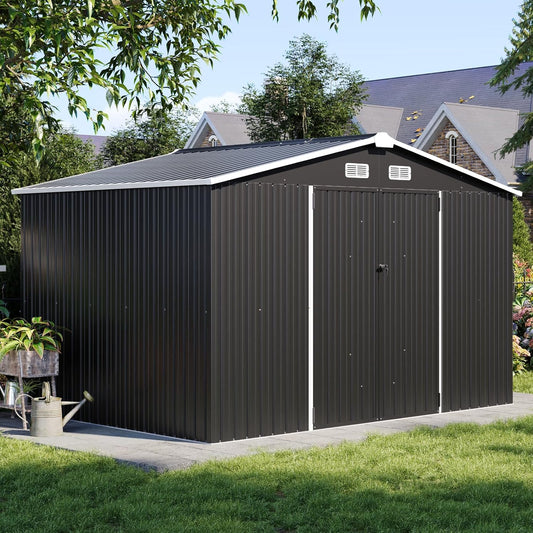 Aoxun 9.4x7.3x6.5 FT Outdoor Storage Shed with Base Outdoor Metal Shed for Tool, Garden, Bike, Placed in Patio, Garden Base Included (Black)