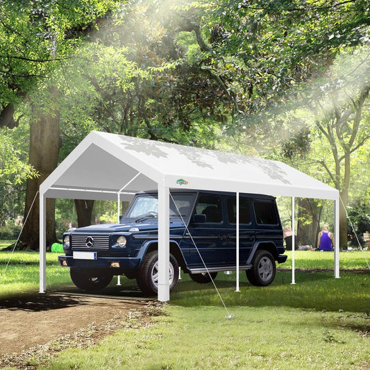 COBIZI Carport 10x20ft Heavy Duty Portable Garage, 2.0 Powder Coated Frame(Better Than Galvanized), Waterproof Shelter with Built-in Sandbags, for Car/Boat/SUV, White