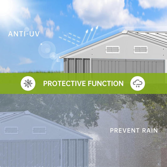 Outdoor Storage Shed 12 x 10 Ft, Outdoor Tool Metal Shed with Lockable Door, Air Vents and Sloping Roof, Metal Aluminum Waterproof Tool Sheds for Yard, Garden, Patio, Garage, Lawn, Gray