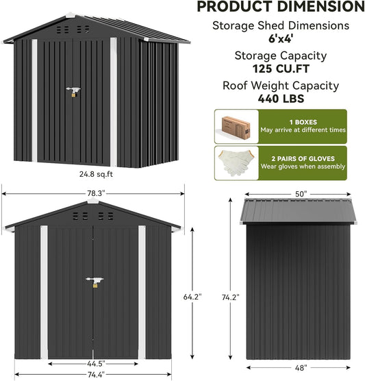 COMHOMA Shed Outdoor Storage Shed Metal,Lockable Doors Tool Sheds with Sloping Roof,Steel Garden Shed with Air Vent for Backyard,Patio,Lawn,Poolside (Grey, 6'*4')