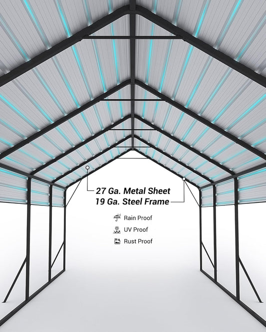 20' x 30' x 8.5' Heavy Duty Metal Carport with Galvanized Steel Roof, Steel Carport Kits Outdoor with Metal Roof, Galvanized Car Shelter for Tractors, Pickup, Boat, Car