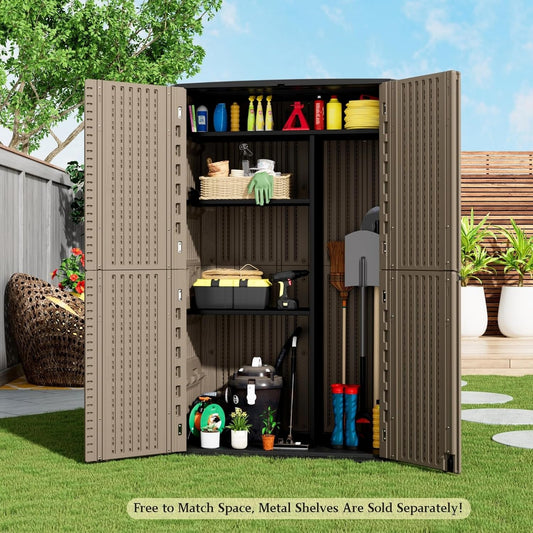ZZM Large 67 Cu.ft Waterproof Storage Shed, Outdoor Storage Cabinet,Durable Resin Storage for Patio Furniture, Garden Tools, Pool Accessories, Mower Storage (Coffee)