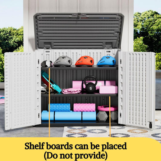 ZZM Large Outdoor Storage Shed, 48 Cu Ft Resin Versatile Storage Cabinet for Patio Accessories, Trash Cans & Garden Tools, Durable Horizontal Storage Box with Lockable Lid (Coffee)