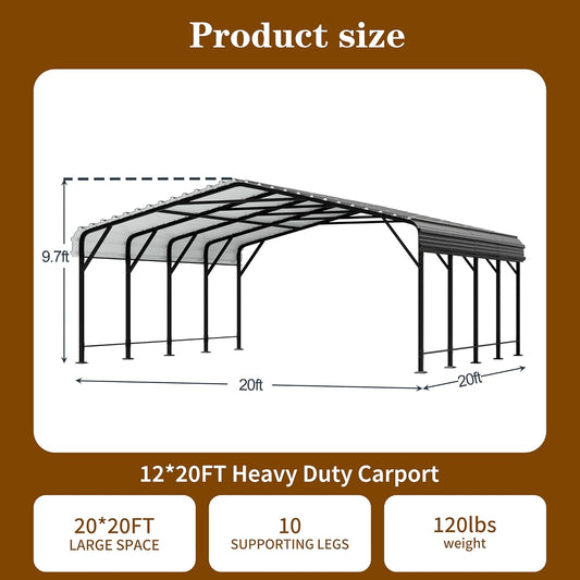 Heavy Duty Metal Carport 10x20 ft Galvanized Steel Carport Shelter for 2 Car - Extra Large Canopy for Dual Vehicle, RV & Boat Storage All Weather Protection Garage Party Tent (10 x 20 FT)