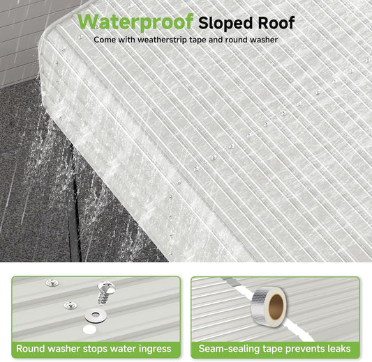 PHI VILLA 8'x12'x7.3' Outdoor Portable Storage Shelter Shed Garage with 2 Roll up Zipper Doors & Vents Carport for Motorcycle Bike Waterproof and UV Resistant Anti-Snow Portable Garage Kit Tent, Gray