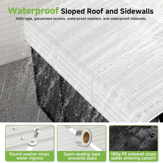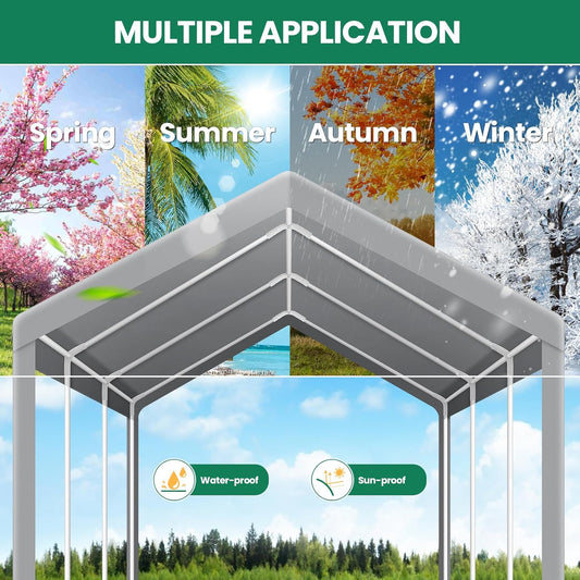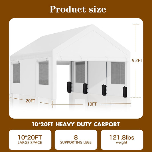 Walsunny Carport 10x20ft Heavy Duty Carport Canopy with Roll-up Ventilated Windows, Portable Garage with Removable Sidewalls, Car Canopy with All-Season Tarp for Car, SUV, Truck, Boat
