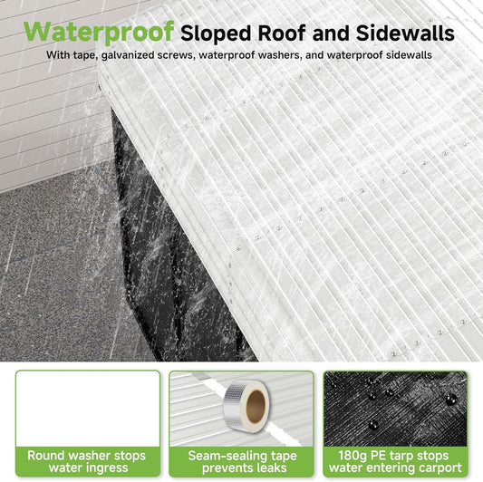 Walsunny Carport, 12x20ft Heavy Duty Carport Canopy with Roll-up Windows, Portable Garage with Removable Sidewalls & Doors, Car Canopy with All-Season Tarp for Car, Truck, Boat