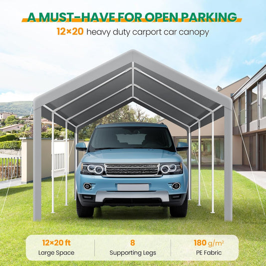 COBIZI Carport Canopy 12x20 Heavy Duty Car Tent Garage, Galvanized Frame Car Canopy Outdoor Shelter Waterproof & UV Protected with Built-in Sandbags & All-Season Tarp for Car Boat Truck, Gray