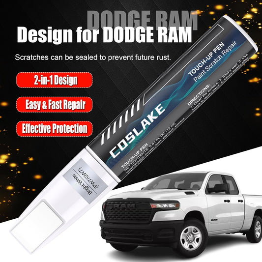 Car Touch Up Paint(Bright White(PW7/GW7)) for Dodge Ram, Car Paint Scratch Repair Kit, Quick & Easy Solution to Repair, 2 in 1 Scratch Remover Pen with 2PCS Disposable Micro Applicators