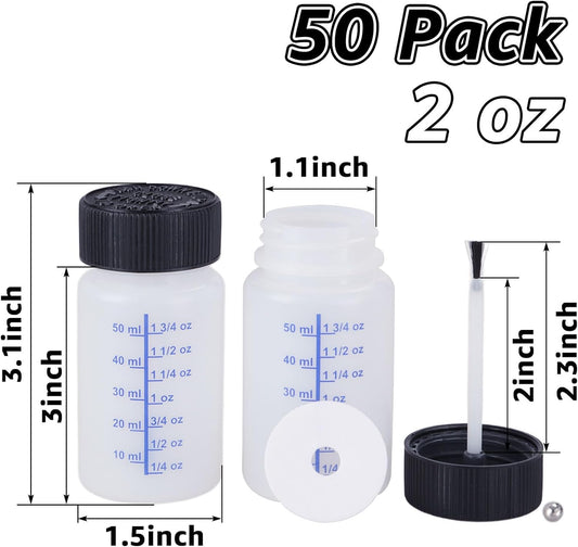 CYEAH 50 Pcs Touch Up Paint Container, 2 oz Paint Touch Up Bottles with Child-safe Lid and Applicator Brush, Touch-up Leftover Paint Container with Mixing Ball for Fixing Wall, Scratches, Car Surface