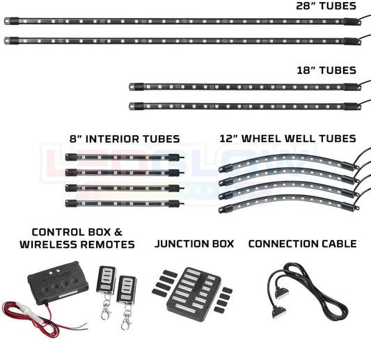 LEDGlow 12pc Million Color LED 4-Seater Golf Cart Underglow Neon Lighting Kit with Wheel Well & Interior Lights Fits EZGO, Yamaha, Club Car, ICON, Evolution, Tomblerin, Star EV - for 12-Volt Battery