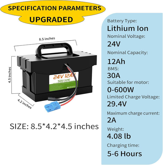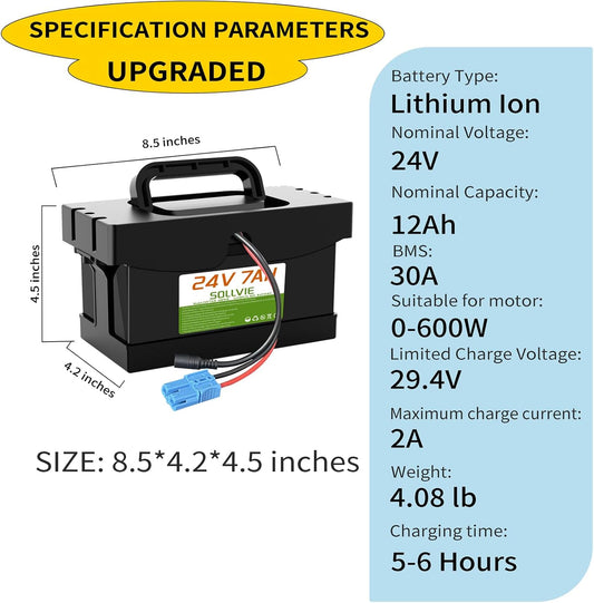 24V 7Ah/12Ah Lithium Battery for Dynacraft Realtree 24V UTV Ride- On Cars & Toys, with 2A Fast Charger