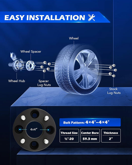 Orion Motor Tech 4x4 Wheel Spacers, Golf Cart Wheel Spacers Compatible with EZGO EZ GO Golf Cart Club Car ATV, 2" Wheel Spacers with 1/2"-20 Studs, Set of 4