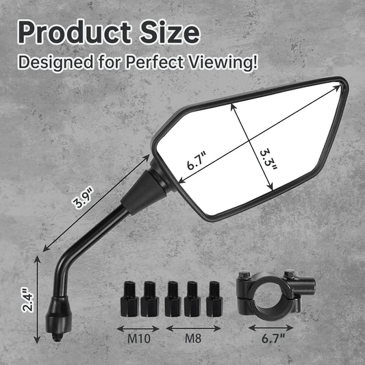 ATV Mirror, Side Rearview Mirrors for Bike Motorcycle ATV Scooter Cruiser with 8mm 10mm Bolt, 7/8" Handle Bar Mount Clamp Compatible with Suzuki Yamaha Honda Kawasaki Victory and More