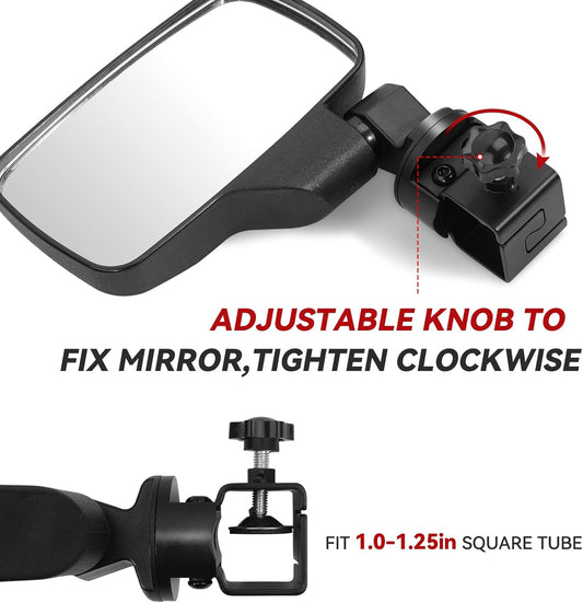 Upgraded Golf Cart Side Mirrors Full Package Tube&No Drilling,Fit for 0.75"-1.35" Square Tube,Adjustable Clips Golf Cart Mirror Compatible with Club Car EZGO Yamaha ICON