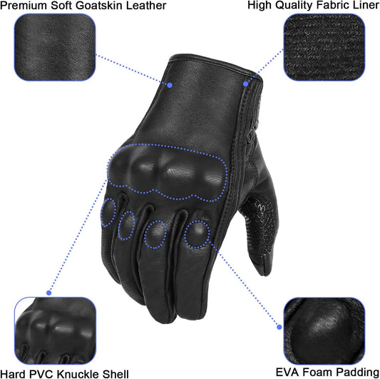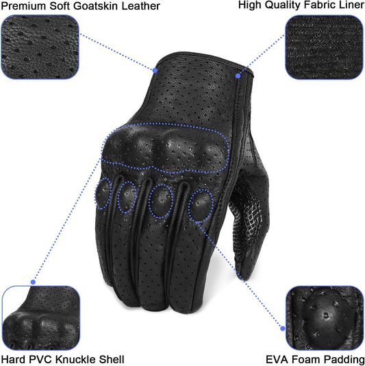 Updated Goatskin Leather Motorcycle Gloves Men Touchscreen Anti-Slip Motorbike Riding Gloves for Men (Updated,Perforated, L)
