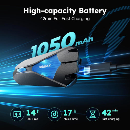 Q8 Motorcycle Helmet Bluetooth Intercom Headset, 230hours Standby, 6 Riders Mesh Communication Systems with Audio Multitasking, Music Sharing, Noise Cancellation, FM Radio, Loud Interphone -1 Pack