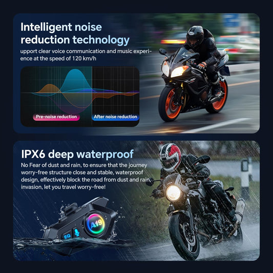 Motorcycle Helmet Bluetooth Headset, Outdoor Wireless Bluetooth 5.4 Headphone Speakers Noise Cancellation Intercom Communication Systems with IPX6 Waterproof/Strong Bass