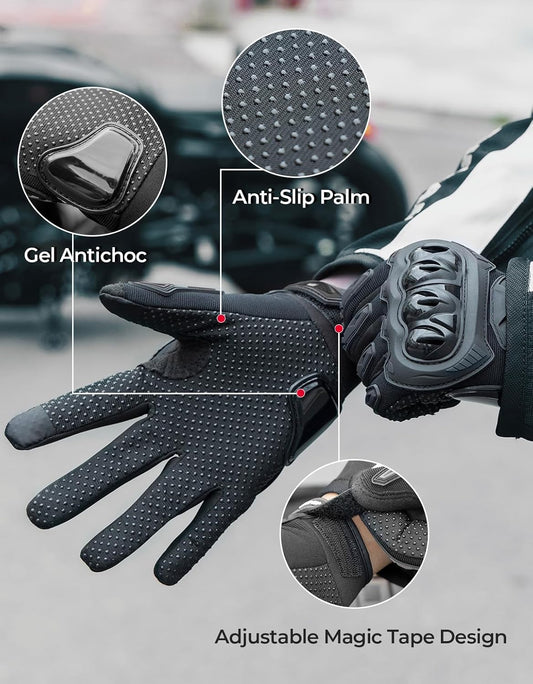 KEMIMOTO Motorcycle Gloves for Men/Women, Touchscreen Dirt Bike Gloves with Shell, Anti-Slip for Motorbike, Riding, Racing, Cycling, Dirt Bike, ATV, UTV, Motocross, BMX, Hiking