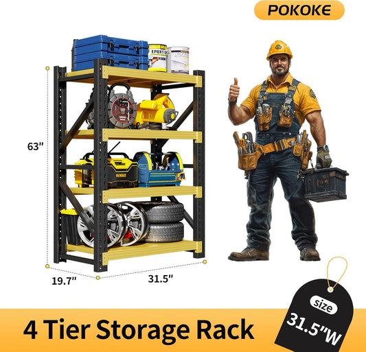 Garage Shelving Unit, 4 Tier Heavy Duty Racks, Easy Assembly, Metal Racks with Adjustable Shelves, 3000 LBS Load Capacity,for Warehouse,Basement (Black&Yellow, 19.7" D x 31.5" W x 63" H)