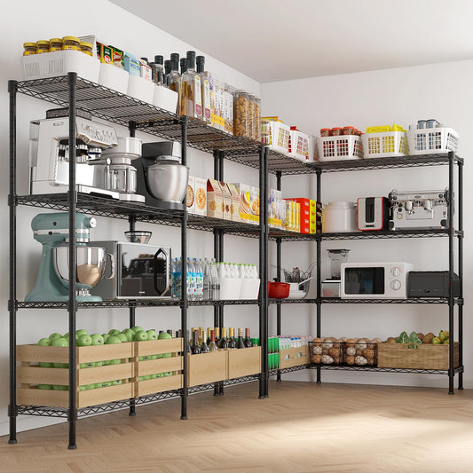 45 "W Storage Shelves 5 Tier Wire Shelving Unit Adjustable Metal Shelving Wire Shelf Pantry Shelves Wire Commercial Rack for Closet Kitchen Pantry Utility Room Garage 45" Wx 13.5" Dx70.5 H Black