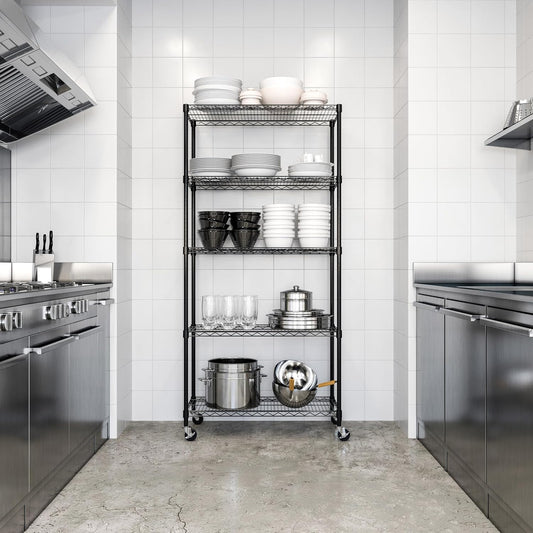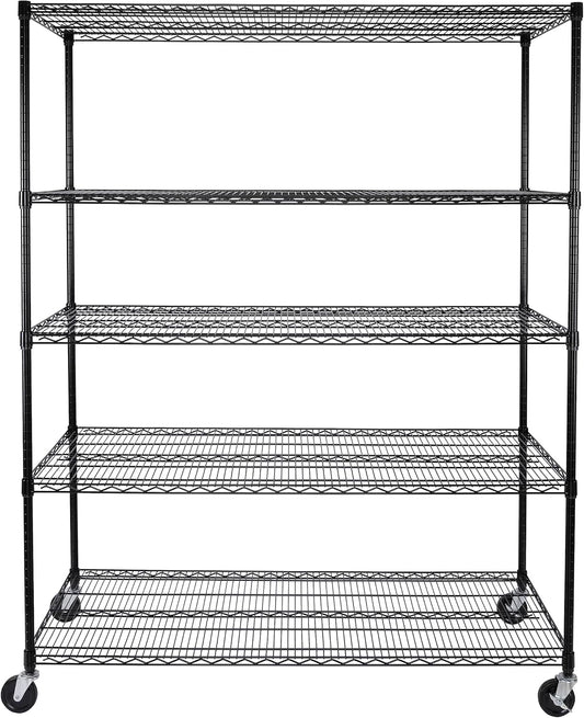 Seville Classics UltraDurable Heavy Duty NSF Solid Steel Wire Rack Storage Unit Wheels, 5-Tier Shelving, 60" W x 24" D
