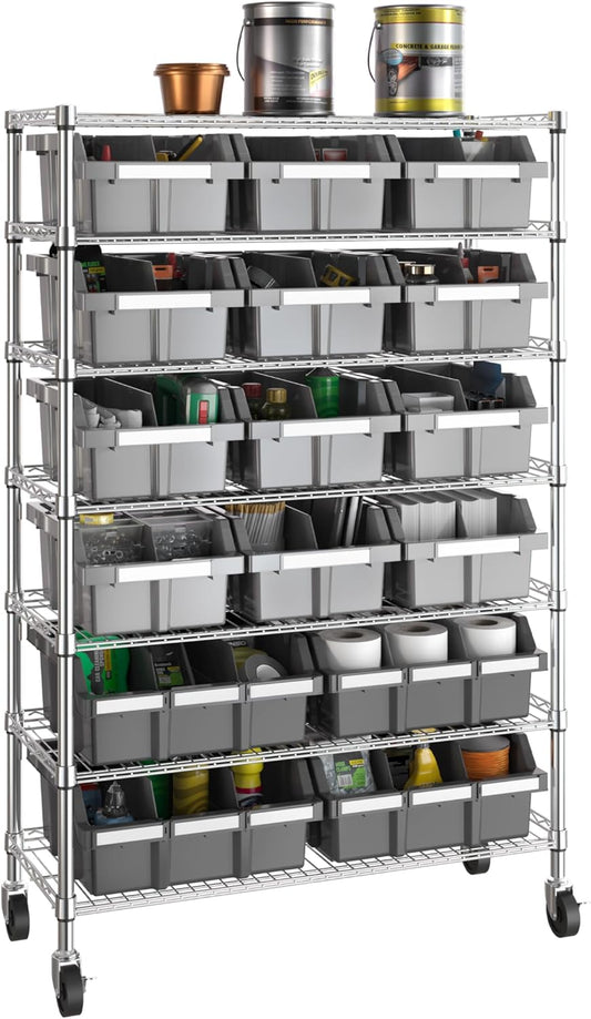 Seville Classics Heavy Duty NSF Bin Rack Solid Steel Wire Shelving Storage Unit, Patented Organizer for Garage, Warehouse, Office, Restaurant, Classroom, Kitchen, Gray, Includes 21 Bins
