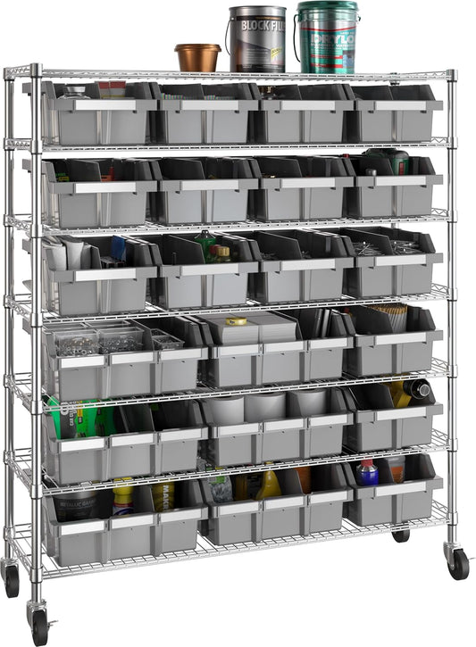 Seville Classics Heavy Duty NSF Bin Rack Solid Steel Wire Shelving Storage Unit, Patented Organizer for Garage, Warehouse, Office, Restaurant, Classroom, Kitchen, Gray, Includes 16 Bins