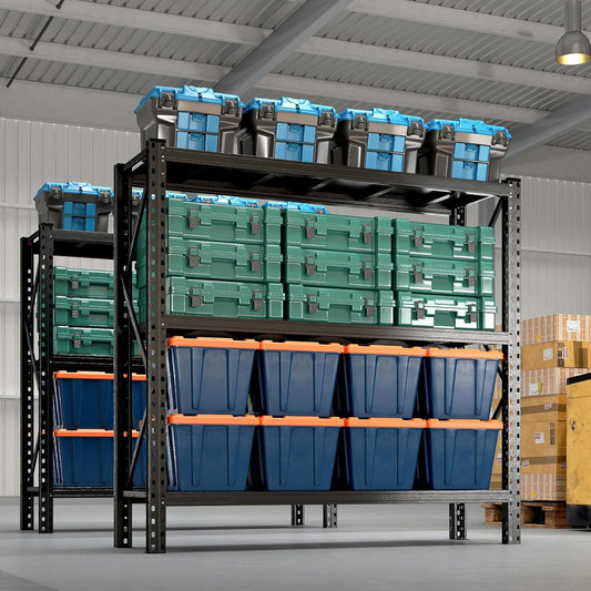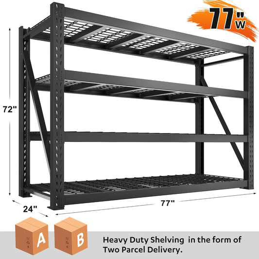 Bepatio 8000LBS Garage Shelving Heavy Duty, 77" Ultra Wide Storage Shelves 4 Tier Metal Shelving for Storage, Adjustable Utility Shelves For Garage, Basement, Warehouse, Black 77" W*24" D*72”H, 2 Pack