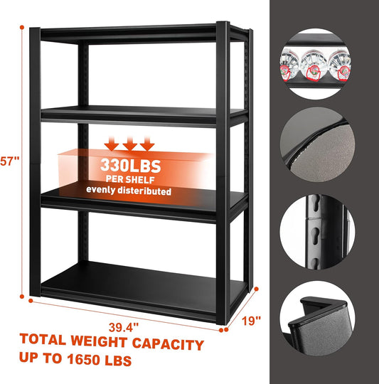 1400LBS Garage Storage Shelves Heavy Duty, 35" W x 16" D x 66" H,4-Tier Garage Shelving Heavy Duty, Industrial Metal Shelving Units for Basement,Fish Tank,Black