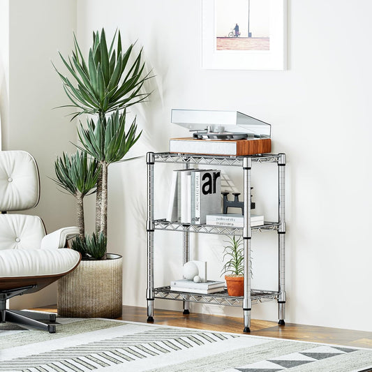 750 lbs 3 Tier Shelf Metal Storage Shelves Wire Rack Closet Organizers for Garage Kitchen Bathroom Laundry Chrome 11.8" D x 25.6" W x 31.5" H