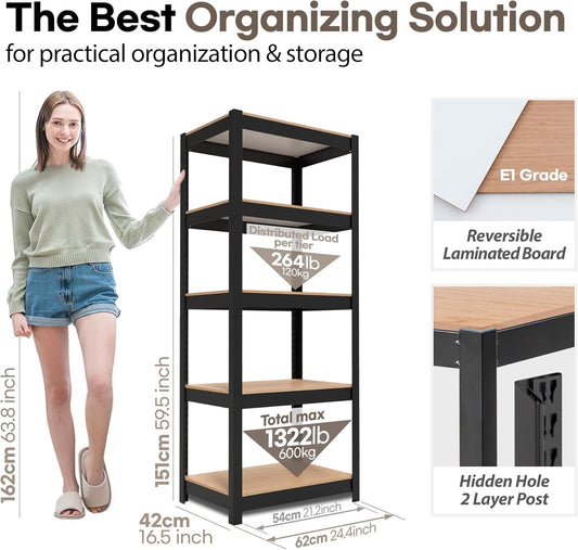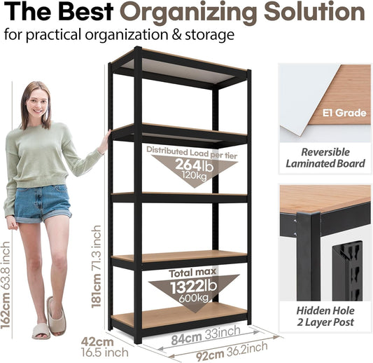 HOMEDANT House Black 5-Tier Laminated Metal Shelving Unit Adjustable Storage Utility Rack Heavy Duty Shelves Organization Shelf Kitchen Garage Pantry Closet 1Pack