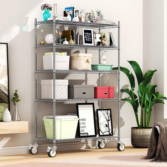 Wire Shelving with Wheels, 48x18x72 Inch, 3000 Lbs Storage Shelves Heavy Duty, Commercial-Grade Adjustable Utility Shelf, NSF-Certified Metal Storage Rack with Shelf Liners, 5-Tier, Chrome