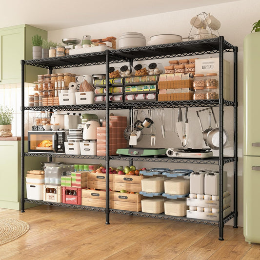 REIBII 5-Tier Heavy Duty Metal Wire Shelves, Industrial Style, 61.7"W x 72.4"H x 15.8"D, 1500 LBS Capacity, Adjustable, Rust Resistant, 2 Pack
