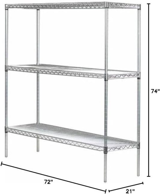 Omega 21" Deep x 72" Wide x 74" High 3 Tier Chrome Starter Shelving Unit