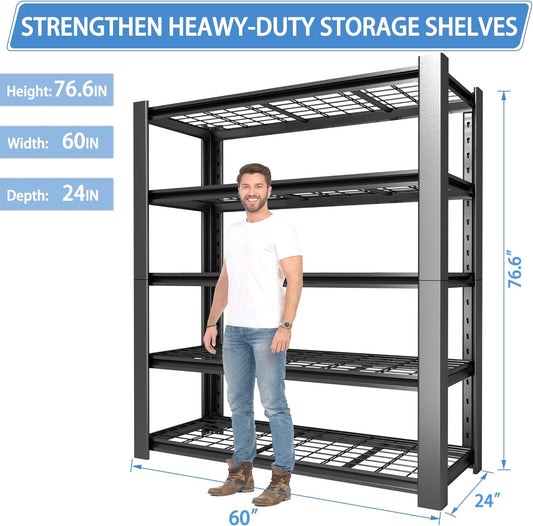 5-Tier Heavy Duty Garage Shelving Unit with Wire Shelves,3000 LBS Capacity Metal Storage Rack 76"H x 60"W x 24"D,Adjustable Boltless Steel Shelves for Garage,Basement,Pantry,Warehouse.1 Pack