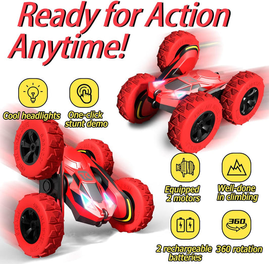 Threeking Waterproof RC Stunt Car Remote Control Cars Double-Sided Driving 360 Degree Flips Rotating Indoor Outdoor Toys Gifts Presents for 6 7 8 9 10 11 12 Year Old Kids Boys Girls