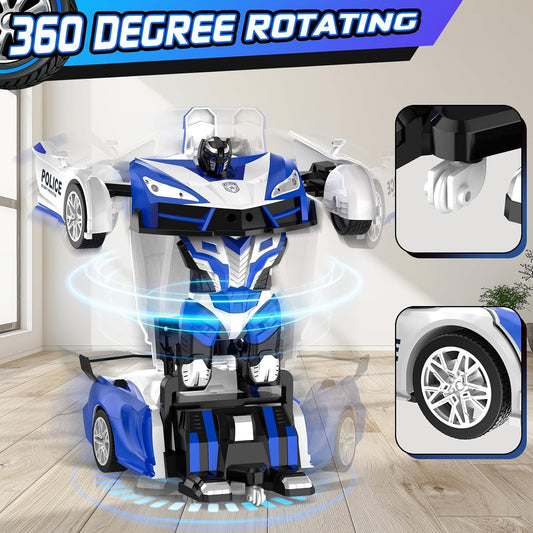 Remote Control Car for Boys 4-7, 2.4GHz RC Car 1:18 Scale, One-Button Transforming Toy with 360° Spins, LED Lights