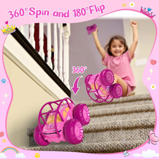 Remote Control Car, Pink RC Cars for Girls, 2.4 GHZ Double Sided RC Stunt Car 360° Rotating Remote Control Crawler with Headlights Cars Toys for 6 7 8 9 10 11 12 Girls Birthday