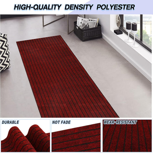 Custom Size Backed Non-Slip Area Rugs Runner, Easy Clean, Waterproof Runner Rugs for Hallway Entryway, Kitchen, Laundry, 3FT x 40FT, Red Stripe