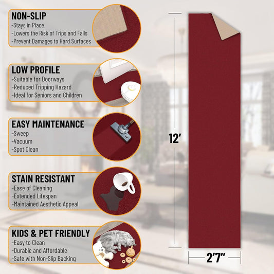 Ottomanson Hallway Runner Rug 2'7" x 12' Non Slip Solid Area Rugs Easy to Clean Laundry Rug Runner Durable & Pet Friendly Floor Carpet Runners for Hallways Entryway Living Room Kitchen, Red