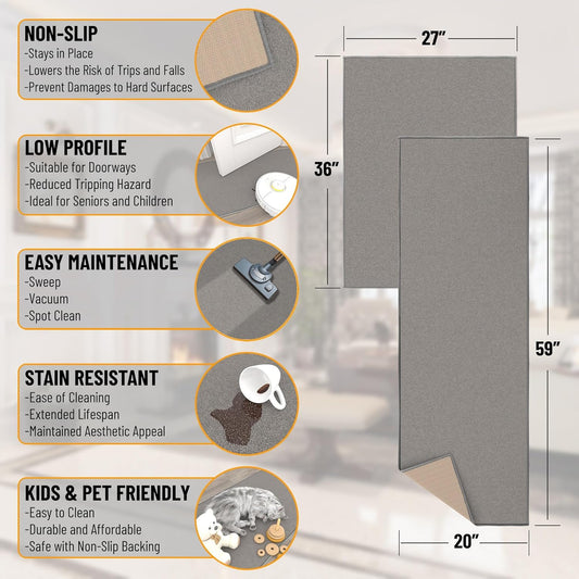 Ottomanson 2-Piece Kitchen Rug Set - Non Slip, Runner & Small Area Rug - Solid - 20" x 59" & 2'3" x 3' - Durable, Stain Resistant for Entryway, Bedroom and Bathroom, Gray