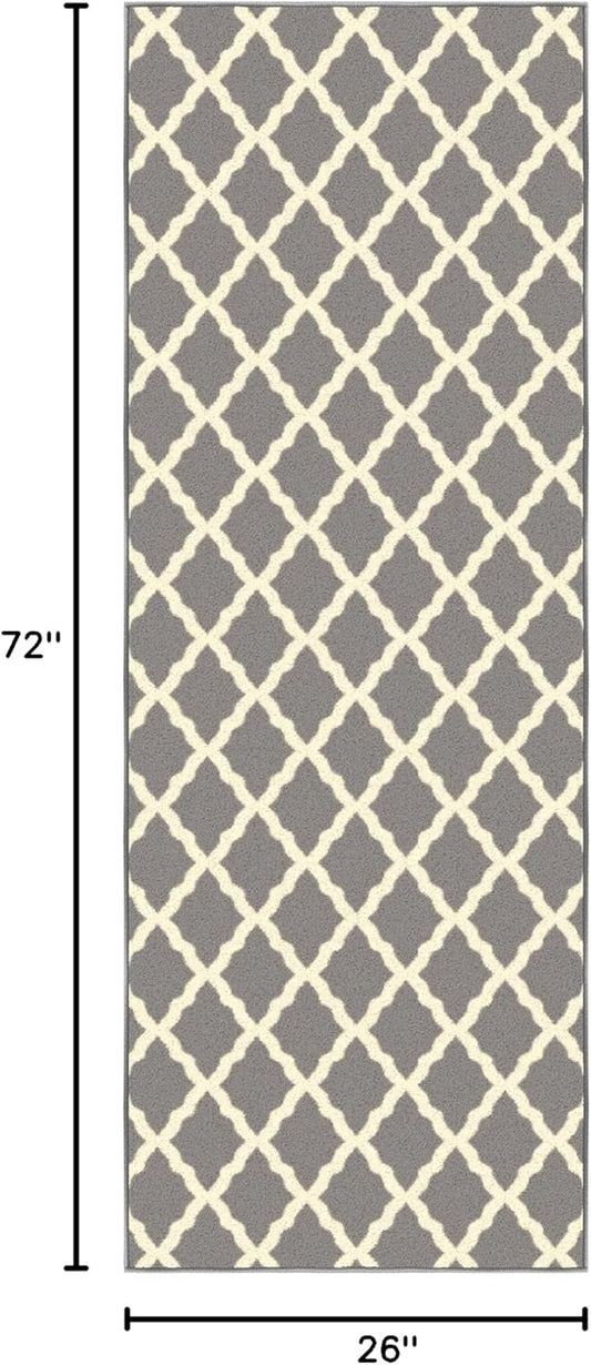 Ottomanson Hallway Runner Rug 20" x 59" Non Slip Trellis Area Rugs Easy to Clean Laundry Rug Runner Durable & Pet Friendly Floor Carpet Runners for Hallways Entryway Living Room Kitchen, Gray