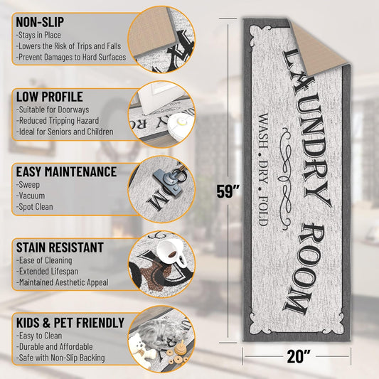 Ottomanson 20" x 59" Laundry Room Rug - Non-Slip Mat for Laundry & Mudroom - Durable, Stain-Resistant, and Easy to Clean - Perfect for High-Traffic Areas - Runner Rug for Entryway Bathroom, Gray